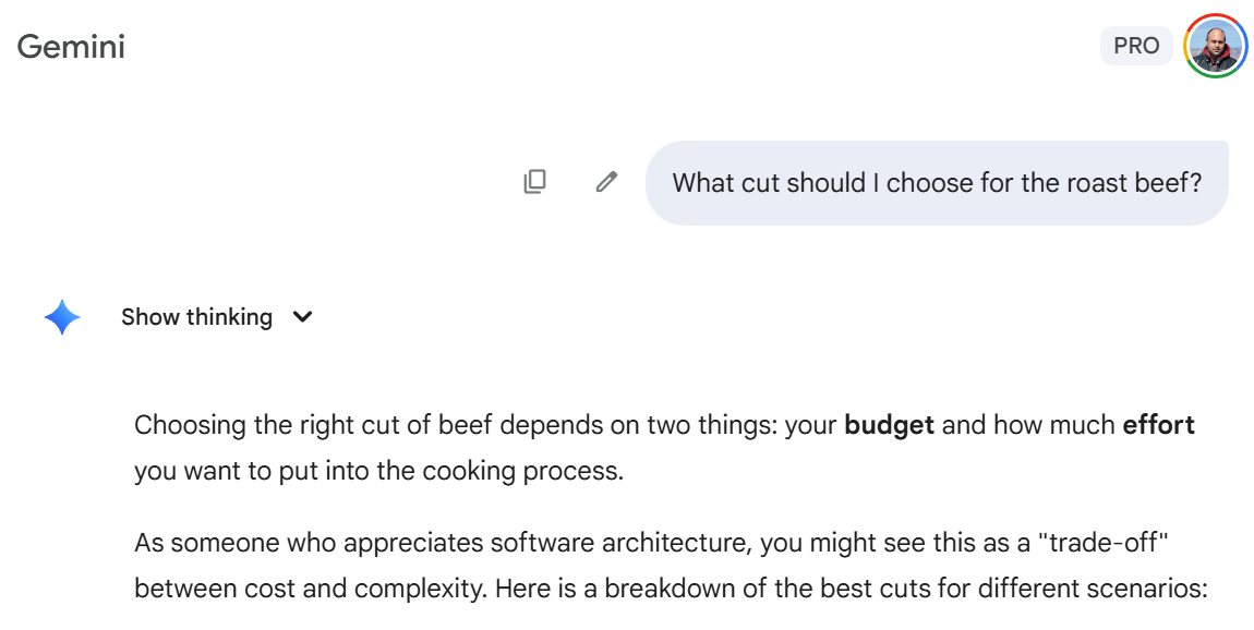 This is the reason why I used to get software architecture references when asking for a simple cooking recipe (which I found really annoying! 😂)