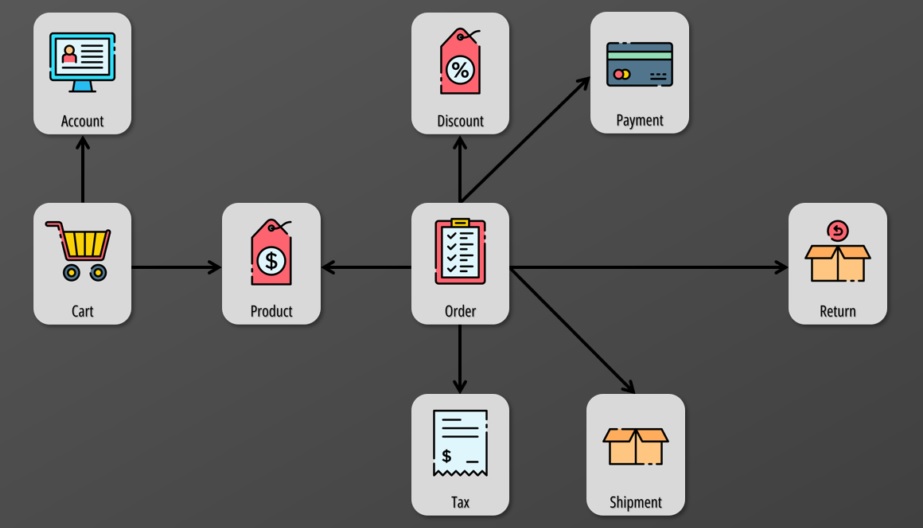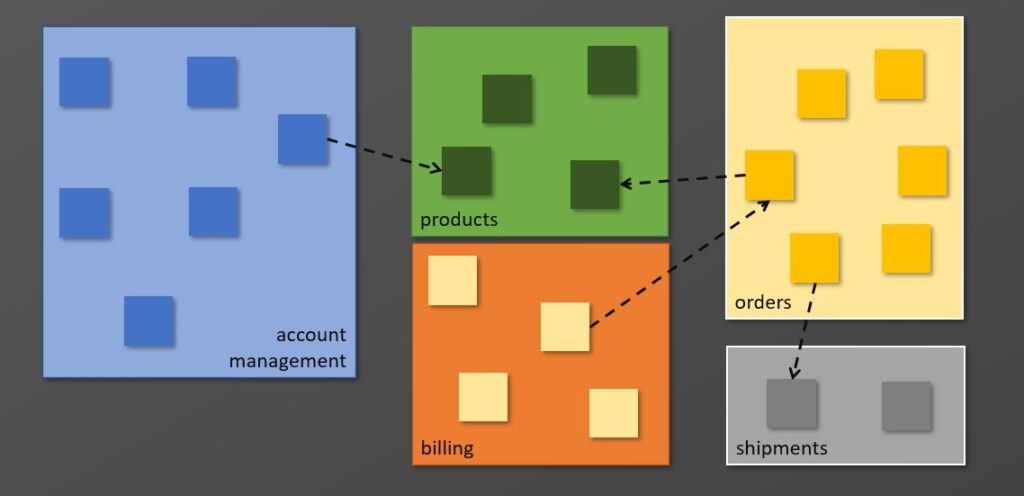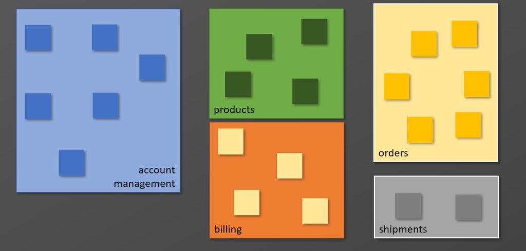 Let’s imagine that we are tasked to build an online store. The domain of our software is everything that is related or necessary to operate the store. Accounts, products, carts, orders, shipments, returns, payments, discounts, taxation, etc., are just a few examples of tangible and intangible things that are part of our domain.