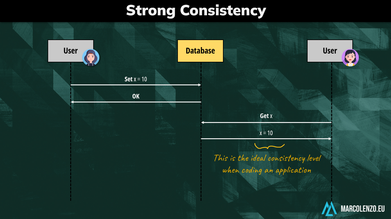 Let’s imagine we are storing a simple integer on a database. If one user updates its value, other users are guaranteed to see the updated value afterwards. This is the ideal scenario when building an application. It’s also expected in a monolithic setup where all data is stored in a single node.