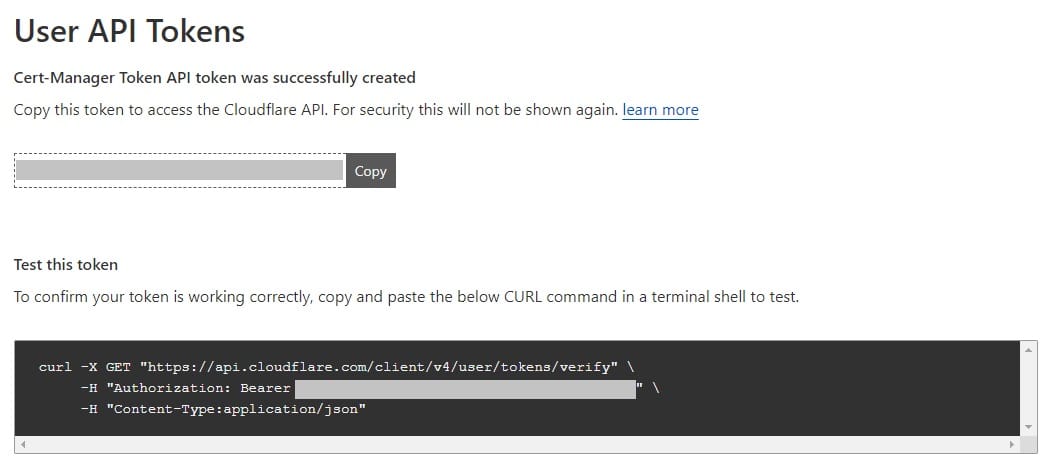 kubectl -n cert-manager create secret generic cloudflare --from-literal=token=<Cloudflare API Token>