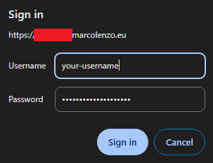 We are done! Just open the browser and try to access your service. If all was setup correctly you should be greeted by a popup similar to this.
