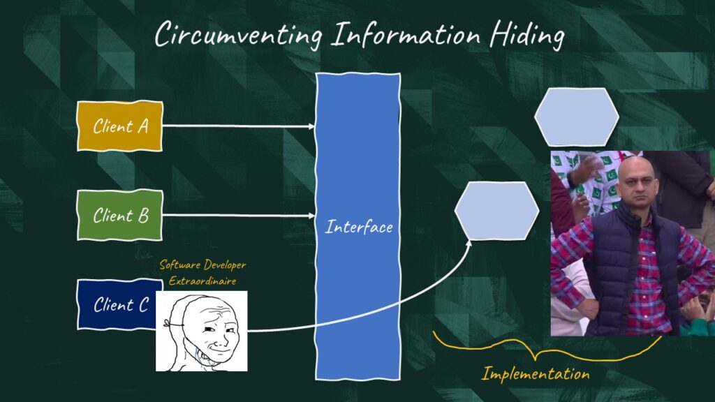 The advantage of microservices in information hiding is that they offer stronger code segregation. In the context of a monolith, a rogue developer could bypass the interface, circumventing information hiding altogether. That’s not possible in the context of microservices.