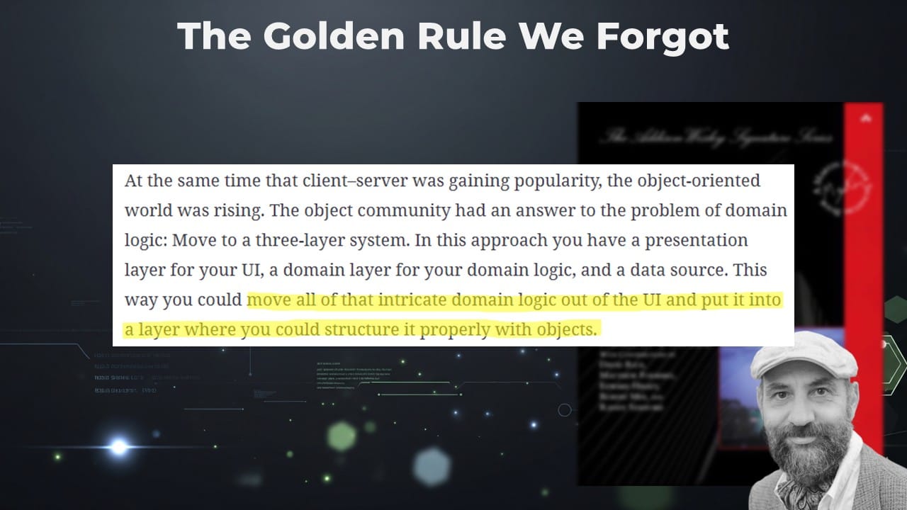 To understand our current predicament, we need to step back in time. Martin Fowler, in his seminal work “Patterns of Enterprise Application Architecture,” highlighted a significant shift with the advent of client-server systems and Object-Oriented Programming: a strong push towards a three-layer architecture. In this model, the UI was intended to be a thin presentation layer, devoid of complex domain logic.